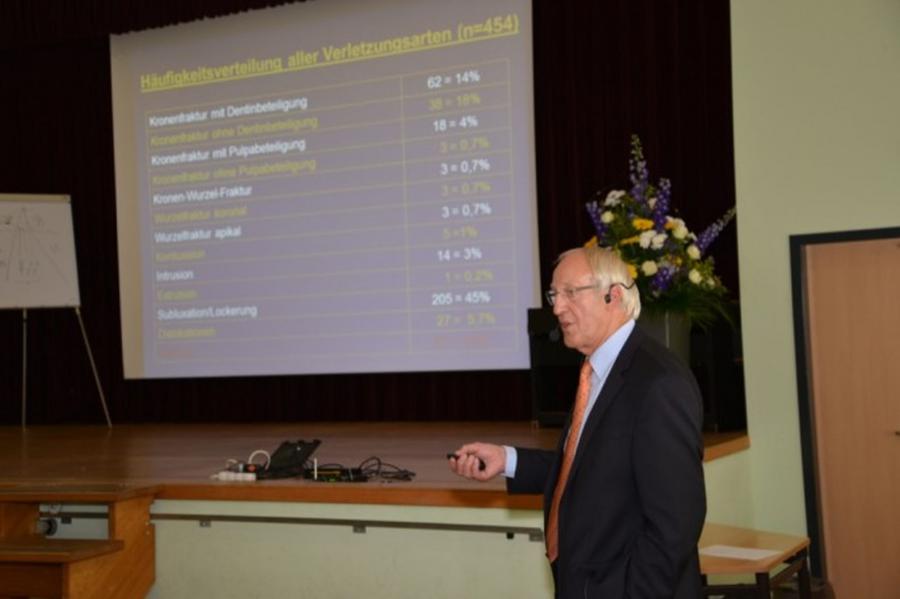 Gleich im Anschluss referierte Prof. Sümnig von der E.M.A.-Universität Greifswald über ein Thema, was jedes zweite Kind betrifft und somit ein häufiges Problem auch in der Zahnarztpraxis darstellt- das Frontzahntrauma. Im Rahmen der Trauma-Prävention wies er ausführlich auf die Zahnrettungsboxen hin, mit denen in Mecklenburg-Vorpommern bereits alle Schulen und Kindergärten ausgestattet sind.