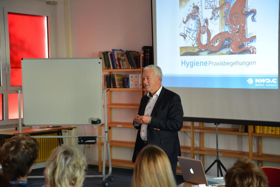 Das Programm für die zahnmedizinischen Fachangestellten wurde von Mathias Lange eingeleitet. Äußerst praxisnah und von den Teilnehmern außerordentlich gut bewertet sprach er zum Thema „Praxisbegehungen – zwischen bürokratischem Irrsinn und realistischer Umsetzung“.